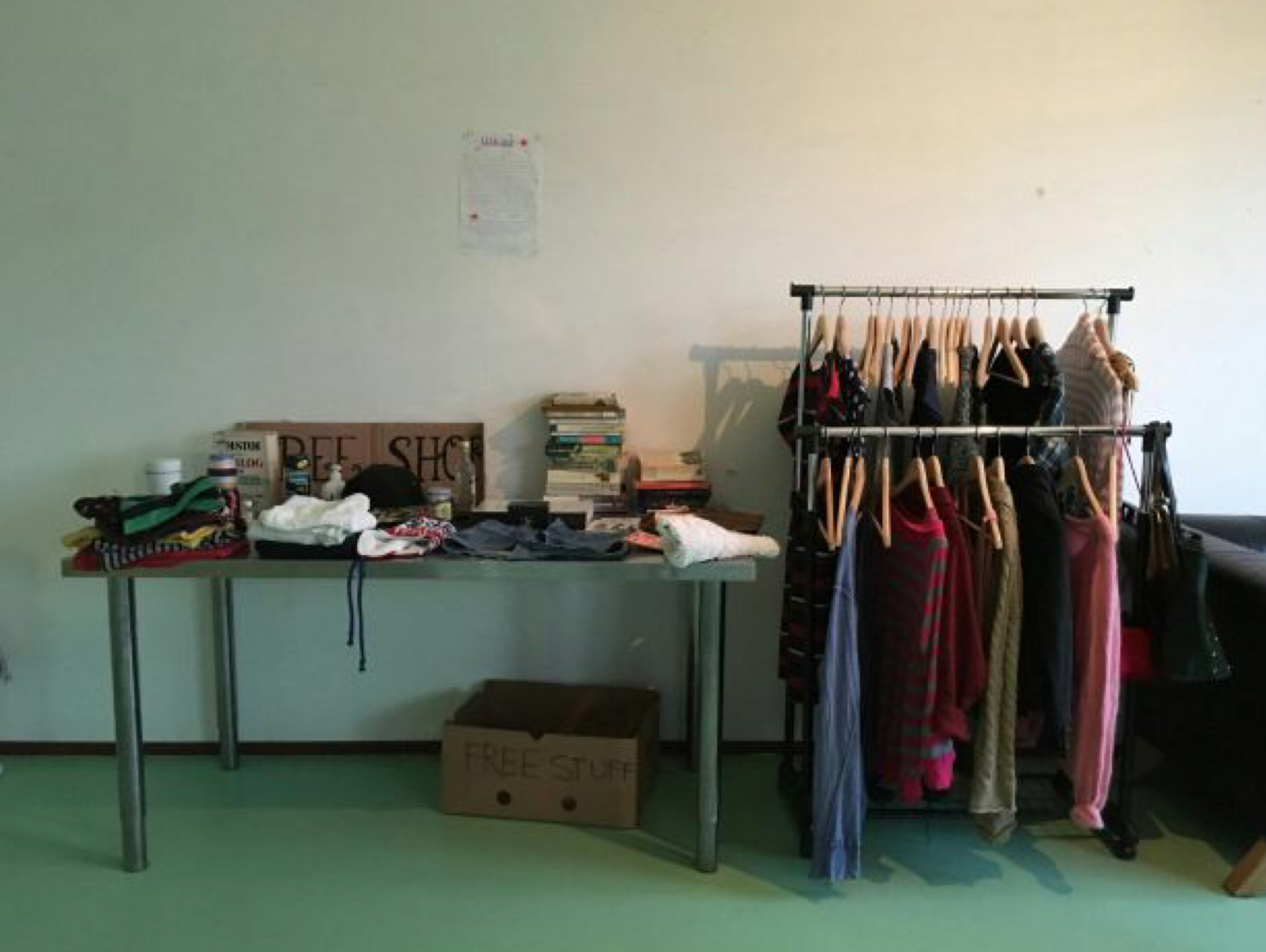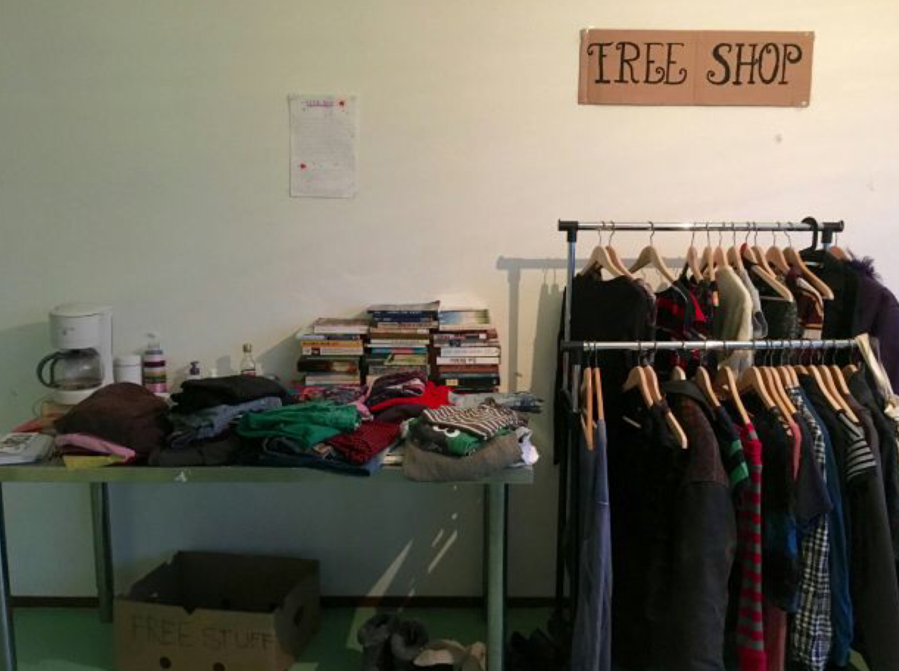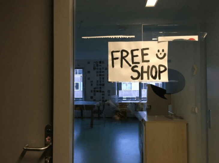 The free shop is open 24/7 and is located on the fourth floor of the first dorm building in room 732 (above the kindergarten). Geelen received an approval from the string and said it was the perfect room because it wasn’t being used by the campus committees.