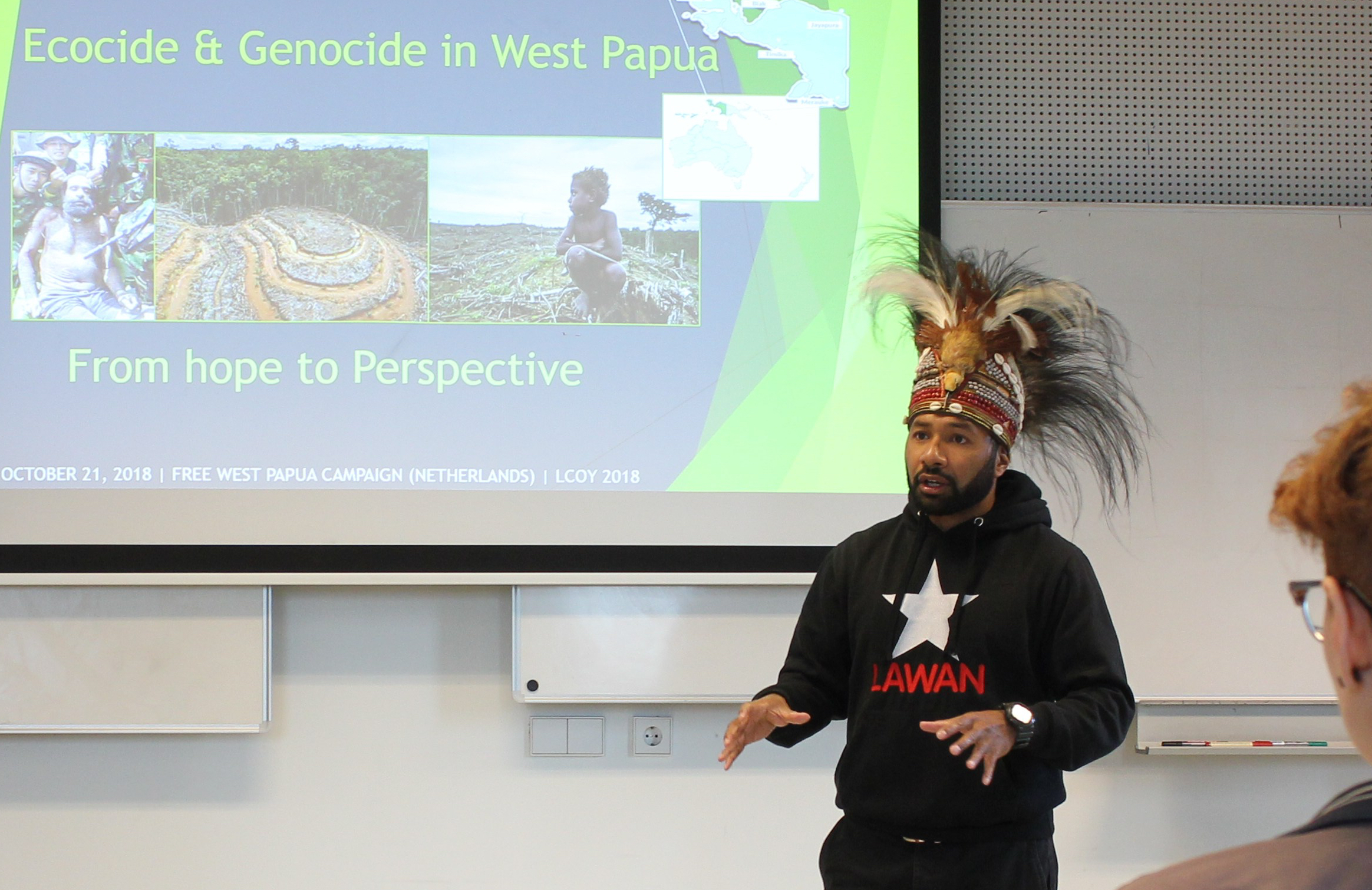 IMG_0593 27 October 2018 The Story of LCOY: Redefining Climate Action 2328 × 1510 Raki Ap presenting on ecocide and genocide in West Papua