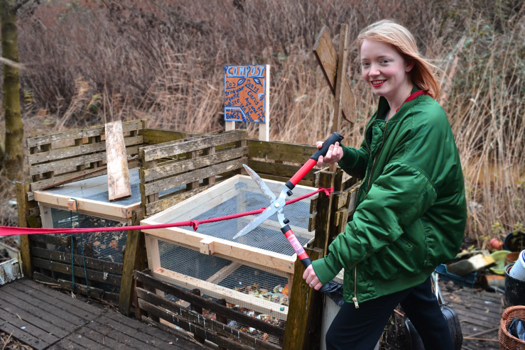 The community garden, which is located behind the courtyard of the middle dorm building, was looking grey and barren in the winter weather. Nonetheless, a team of dedicated AUC garden enthusiasts defied the brisk Dutch temperatures to attend the grand opening of the two new compost bins. Marinissen ended the ceremony by cutting a recycled ribbon with a garden scissor — officially declaring the new and improved compost bins open for all dormitory residents to use.