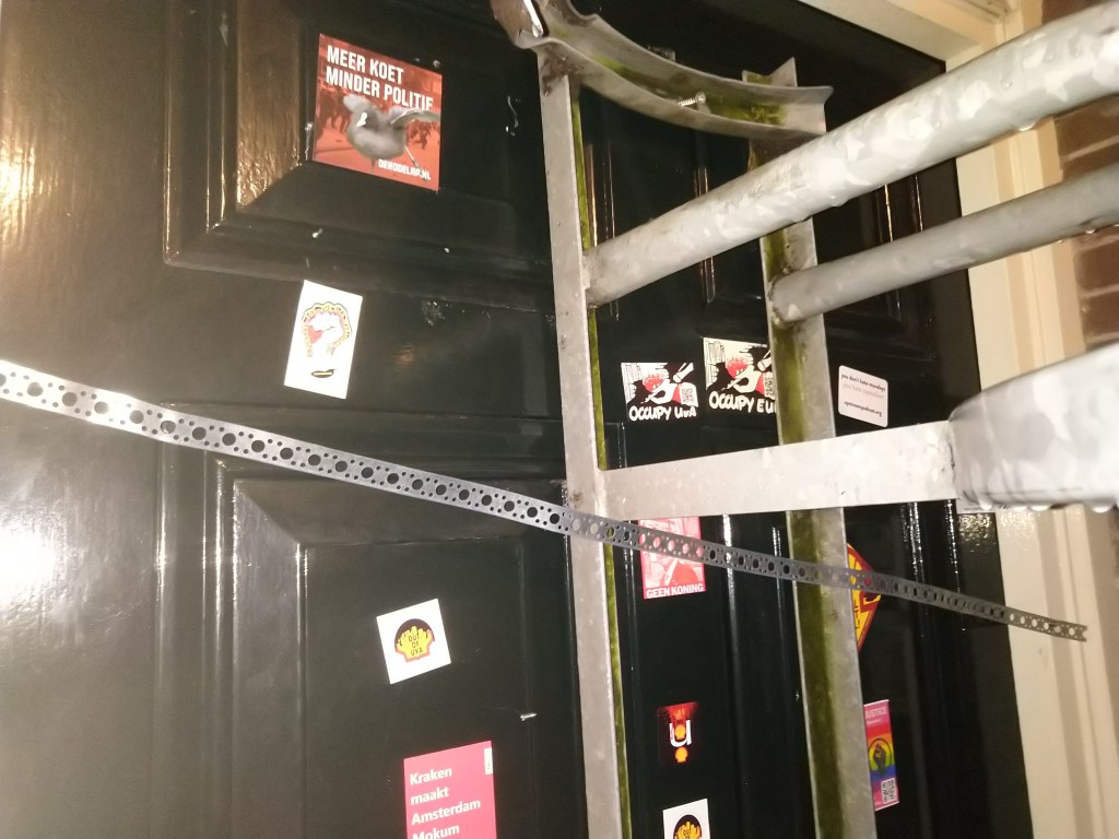 The students that are present know that the police will clear them out that same evening. Without further ado, a barricade is created by screwing a bicycle stand into the door. A core of approximately 25 activists decides to remain in the building. Inside, tables are placed in front of the two entrance doors to the AAC and couches put on the stairs that lead to the first floor of the building.