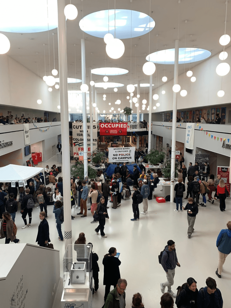 During the day, there were a few police officers walking around the building. For Spike, this was symbolic and reflected the neoliberal capitalist structure of UvA. “You have a cop walking into an educational institution. What does that mean for academia?” Spike asks.