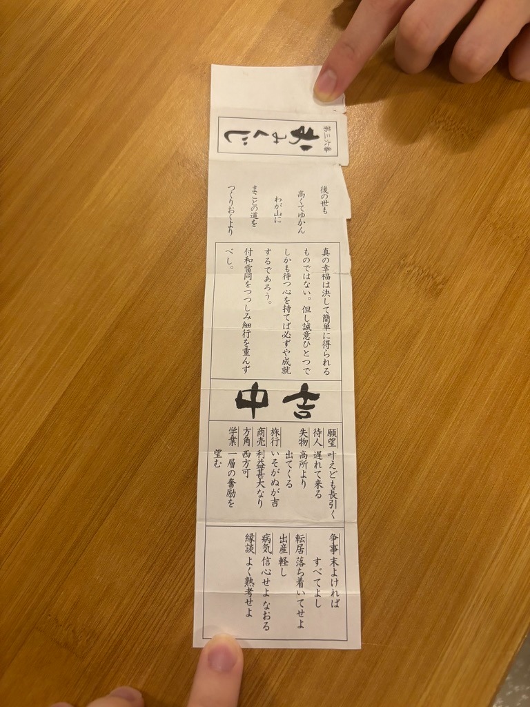 After the New Year begins, Machida’s family goes to a specific shrine near where they live every year to get omikuji – paper slips that predict what one’s year will look like. The omikuji describes one’s fortune and offers specific advice for various areas of life, such as academics, business, or family. Machida says that her omikuji tells her to work harder for her academics. “Have you [been doing so]?” Morgenstern asks. “Yes!” Machida says, laughing.